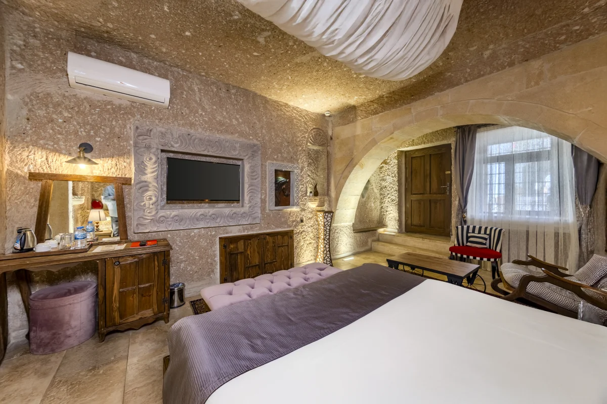 Bu oda, özellikle balayı çiftleri için romantizmin doruklarını yaşatmak amacıyla tasarlanmış büyüleyici bir mekandır. Tasarımında taşın sıcaklığı ile ahşabın zarafeti bir araya getirilerek rüya gibi bir atmosfer sunulmaktadır. Unutulmaz bir konaklama deneyimi için odada özel bir şömine ve jakuzi bulunmaktadır.